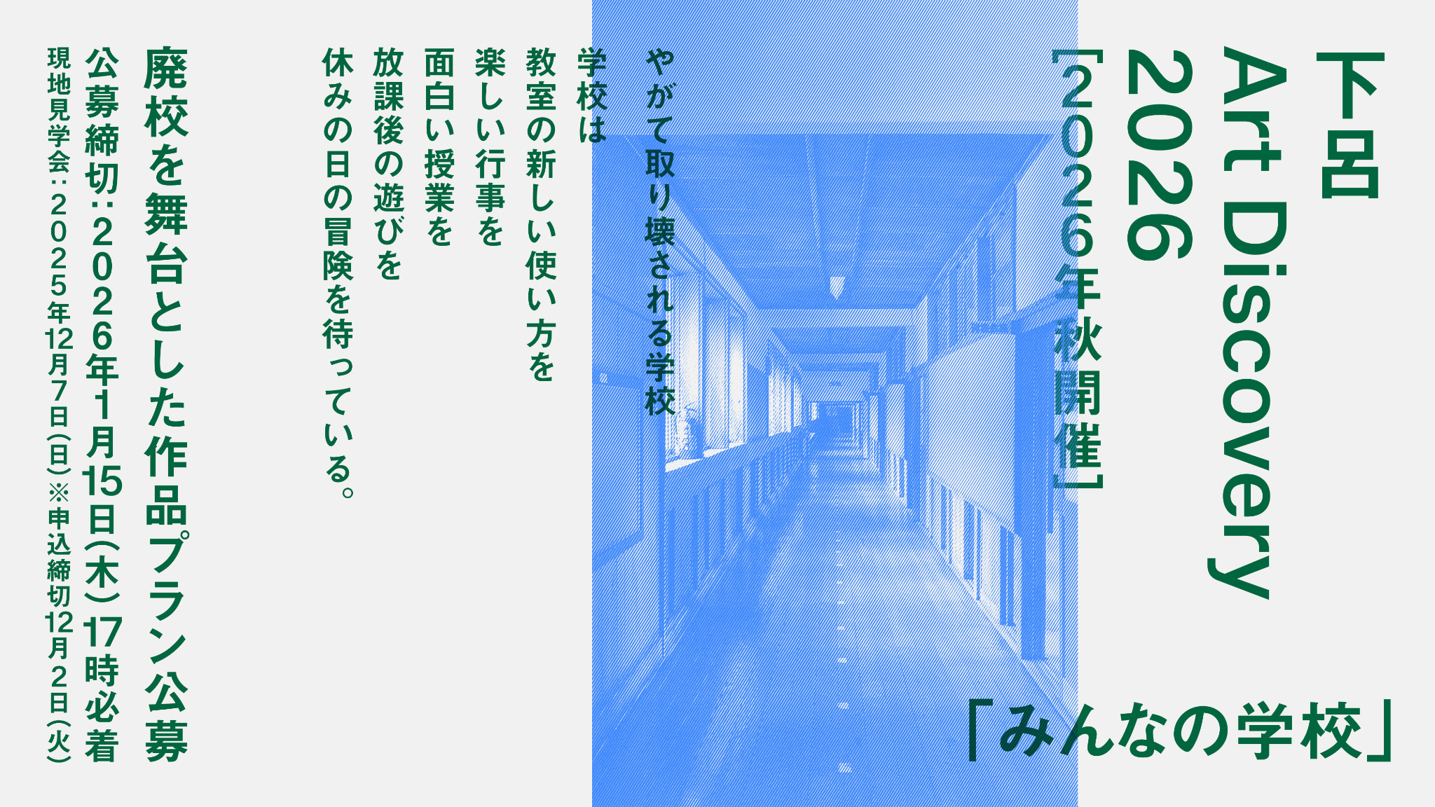 開催に先立ち、廃校を舞台としたプロジェクト「みんなの学校」の作品プラン、各種プログラムを募集します。